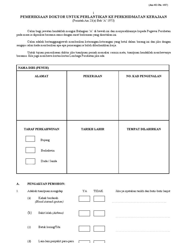 _____ Official stamp. A Form I-94 is needed by all visitors except. Borang Permohonan Pemeriksaan Perubatan Untuk Pelantikan Ke Dalam Perkhidmatan Awam.